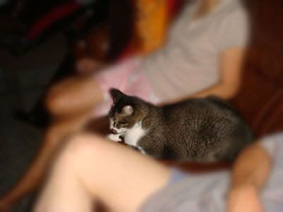 My cat squeezing itself in between my parents..spoilt brat..haha
