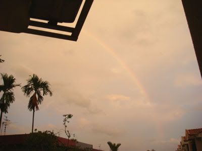 The rainbow i saw outside my window today! spotted it too late as it was fading away already..shd hav keep a lookout earlier..it's been so long since i saw a rainbow..does it means something good gonna happen? haha..