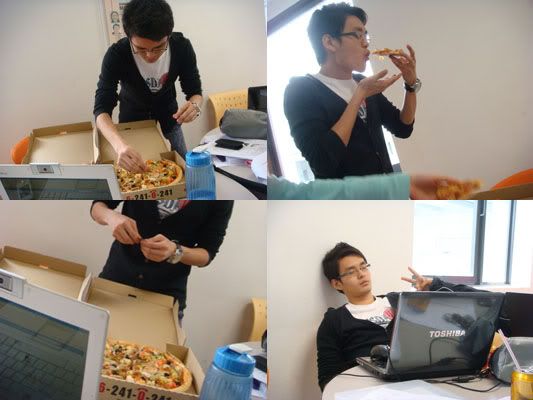 Was rushing our Market Research project before felix went bintan for holiday..we worked hard just for him..haha..that's why he treated us PIZZA! yay! :P Thanks boss!
