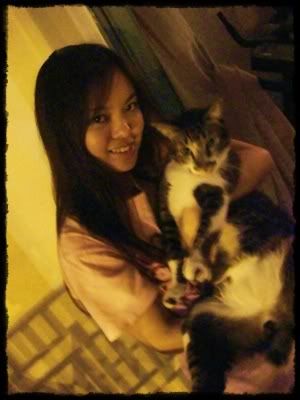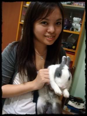 Finally got a pic with Xiao Qi Dong..short-tempered rabbit..And a pic with my fatty kitty~ hee..i look like a mother rabbit cos we've got the same color..white and grey..haha